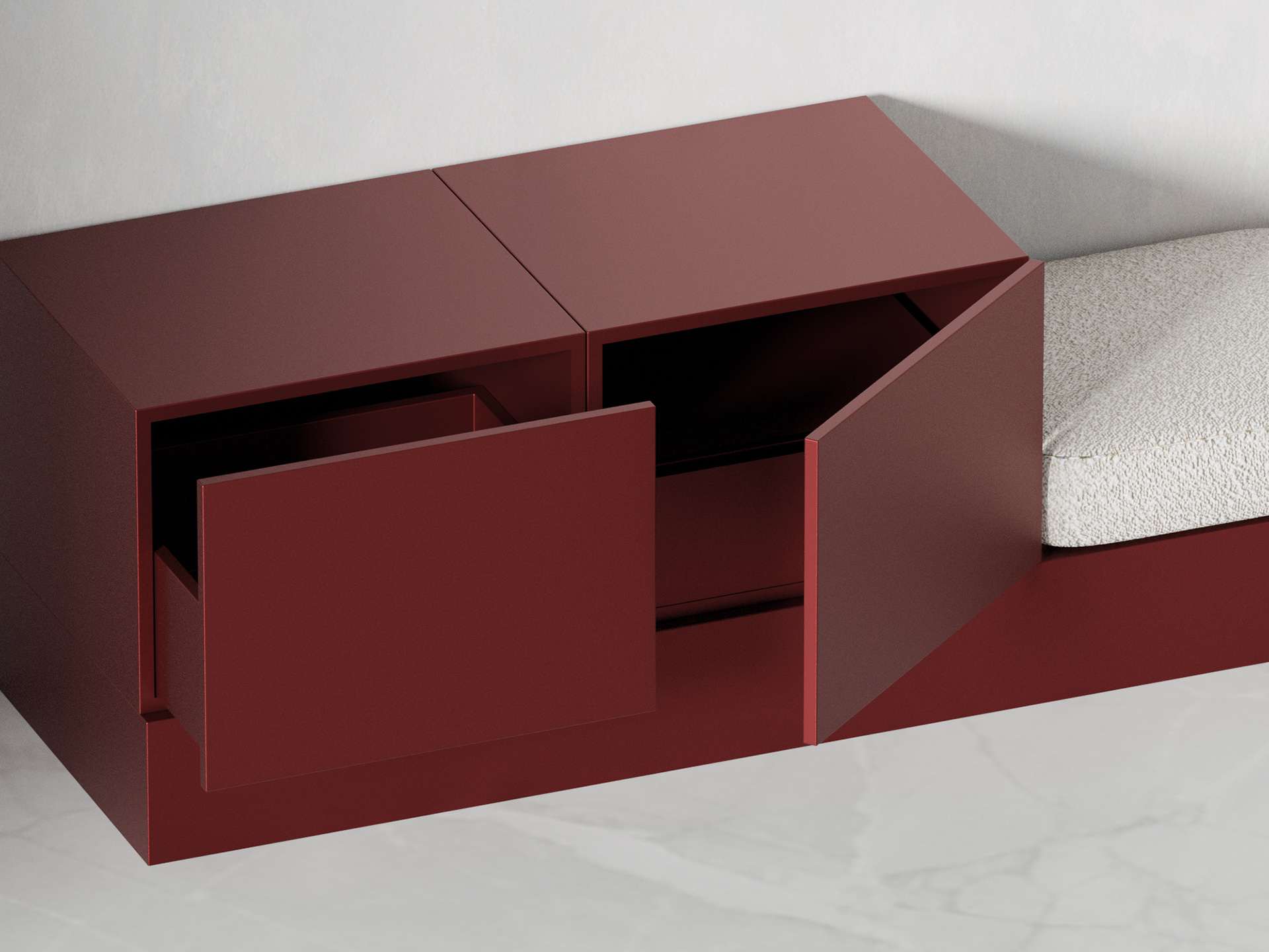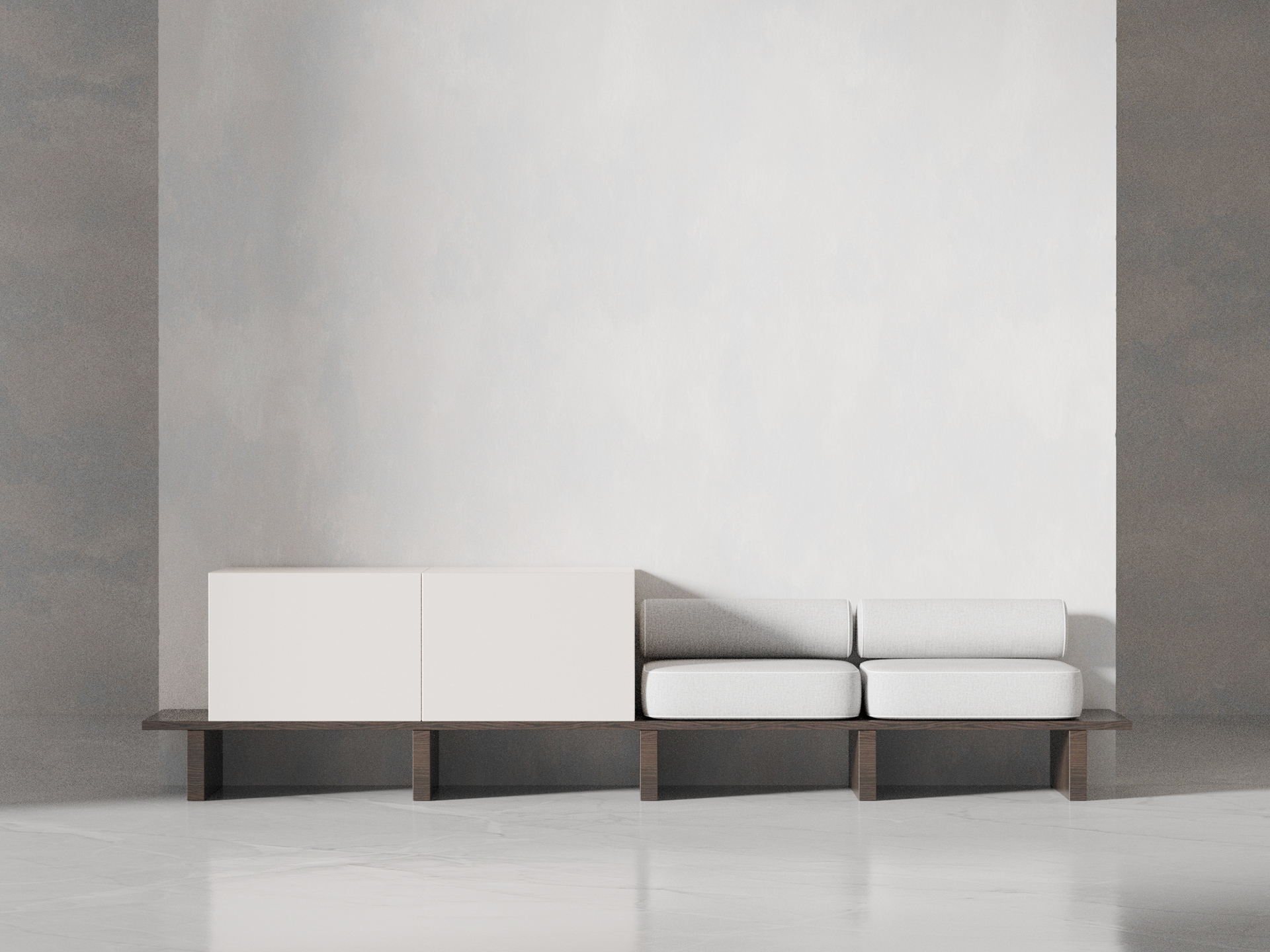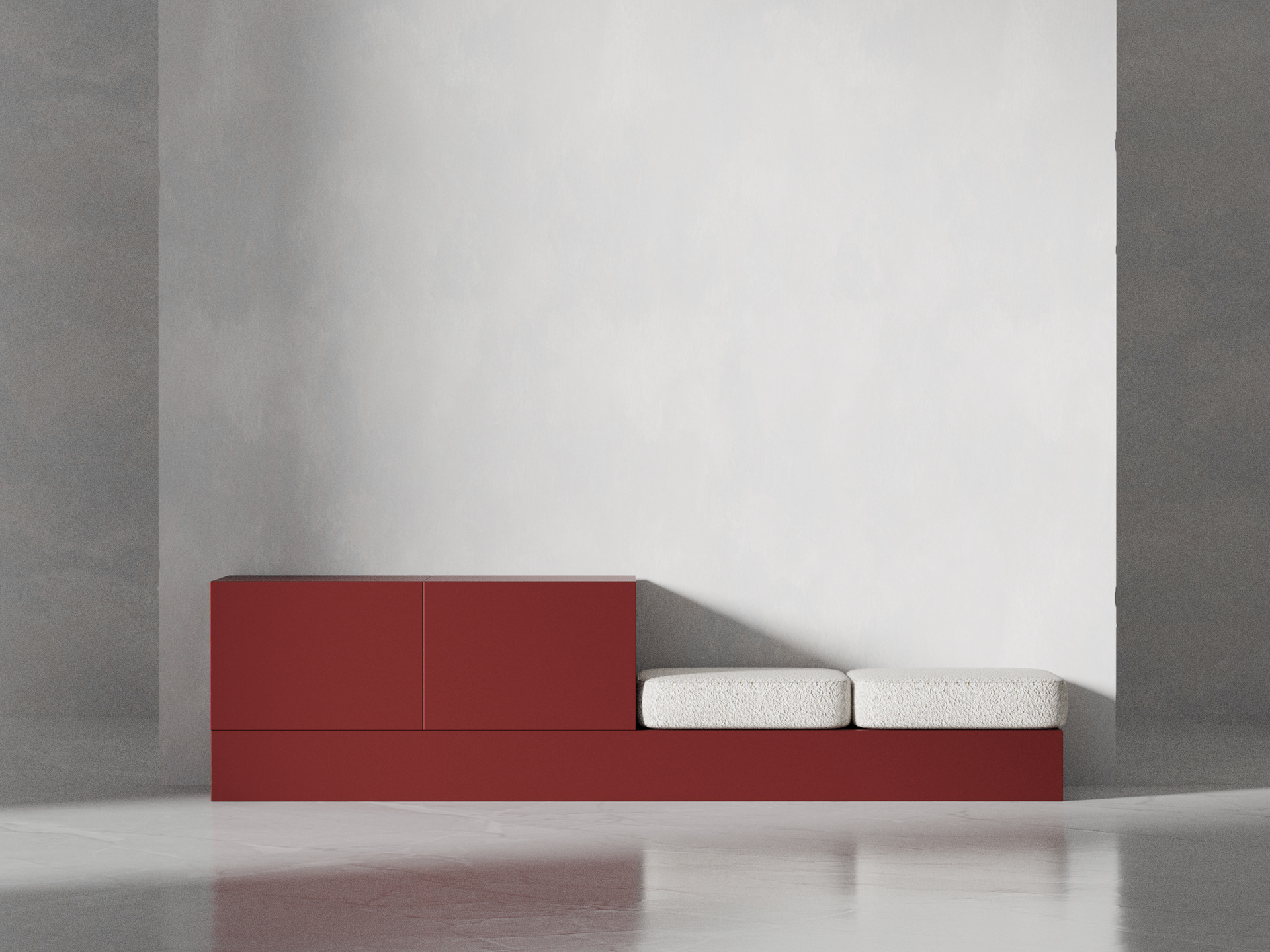 Volume is a modular furniture system that combines cupboards and upholstered seats, allowing numerous configurations.